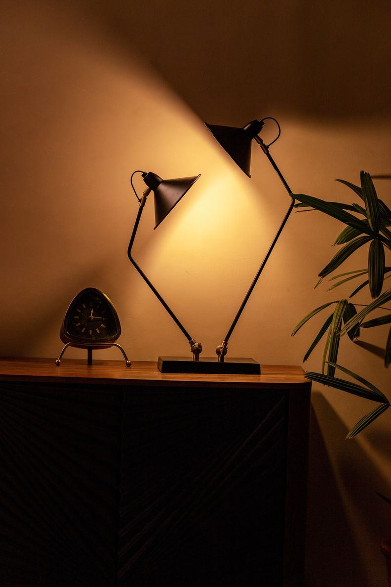 Flare by Lumehaus exudes bold sophistication with its sleek black iron base, complemented by subtle brass detailing. The striking contrast between the deep black and the warm brass accents creates a dramatic yet refined look, making this lamp a statement piece for any room. The matching iron shade ties the design together, ensuring a cohesive, modern aesthetic. Flare is perfect for contemporary spaces that crave an industrial yet polished touch.