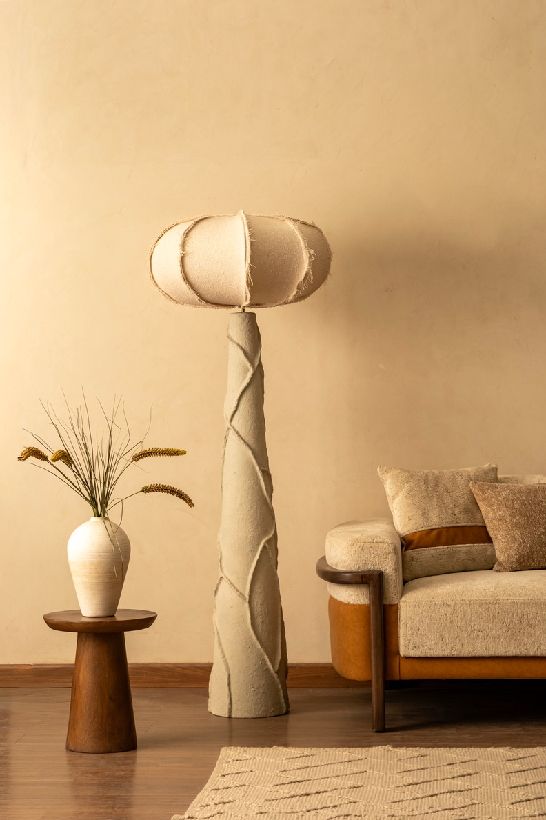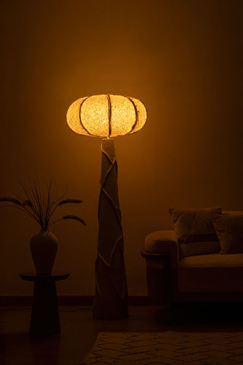 Miro by LumeHaus explores softness held within structure. The paper mâché base rises with subtle twists and interruptions, shaped to preserve irregularity rather than perfection. Its grounded mass supports a rounded bouclé shade that diffuses light across textured fabric, creating depth without glare. The composition feels warm yet resolved — expressive without excess. Available in multiple sizes, Miro introduces sculptural intimacy to contemporary interiors.