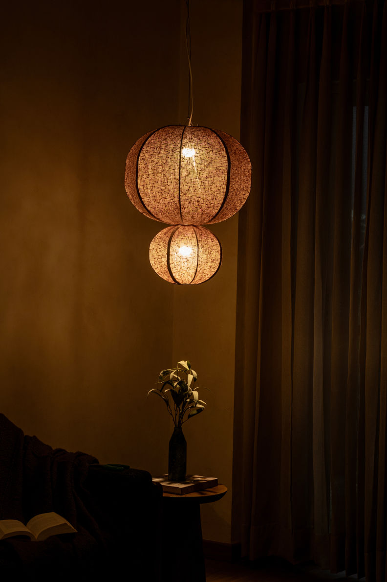 Nubo by LumeHaus explores light that settles rather than disperses. The layered rounded form slows illumination, allowing glow to move gently through volume instead of projecting sharply. The fabric surface keeps the silhouette airy while preserving presence. Available in multiple sizes, Nubo is designed to be felt more than noticed — suspended calm in space.