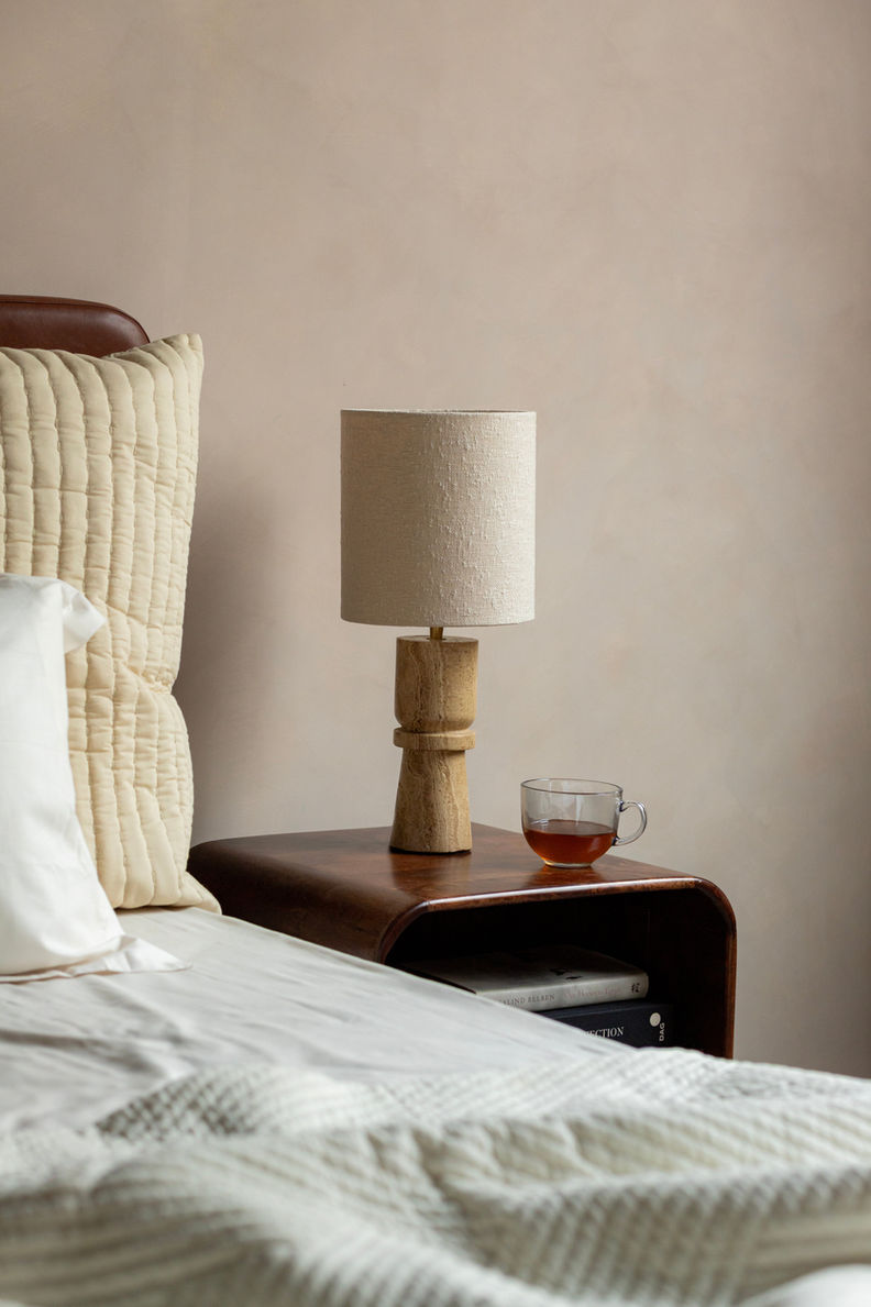 Serenita by LumeHaus is a quiet ode to natural elegance. Carved from warm travertine marble, the base showcases soft tonal variations and organic veining that make each piece one of a kind. Paired with a handloom white shade, it casts a calm, diffused glow—bringing serenity and refinement to any space. With its timeless materials and gentle presence, Serenita is designed to anchor interiors with subtle luxury and sculptural grace.